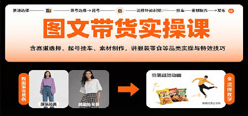 [图文带货实操课,含赛道选择、起号挂车、素材制作,讲服装零食等品类实操与特效技巧]