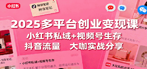 [2025多平台创业变现课:小红书私域+视频号生存+抖音流量,大咖实战分享]