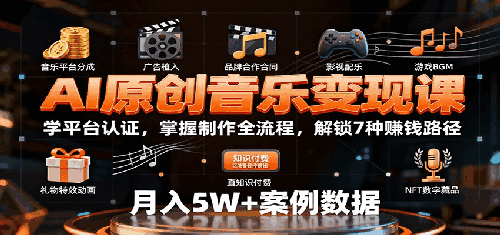 [AI原创音乐变现课:学平台认证,掌握制作全流程,解锁7种赚钱路径]