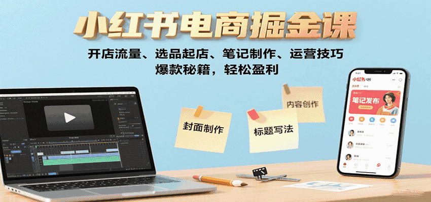 [小红书电商掘金课:开店流量、选品起店、笔记制作、运营技巧,爆款秘籍,轻松盈利]