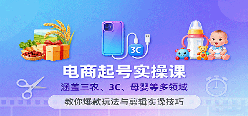 [电商起号实操课,涵盖三农、3C、母婴等多领域,教你爆款玩法与剪辑实操技巧]
